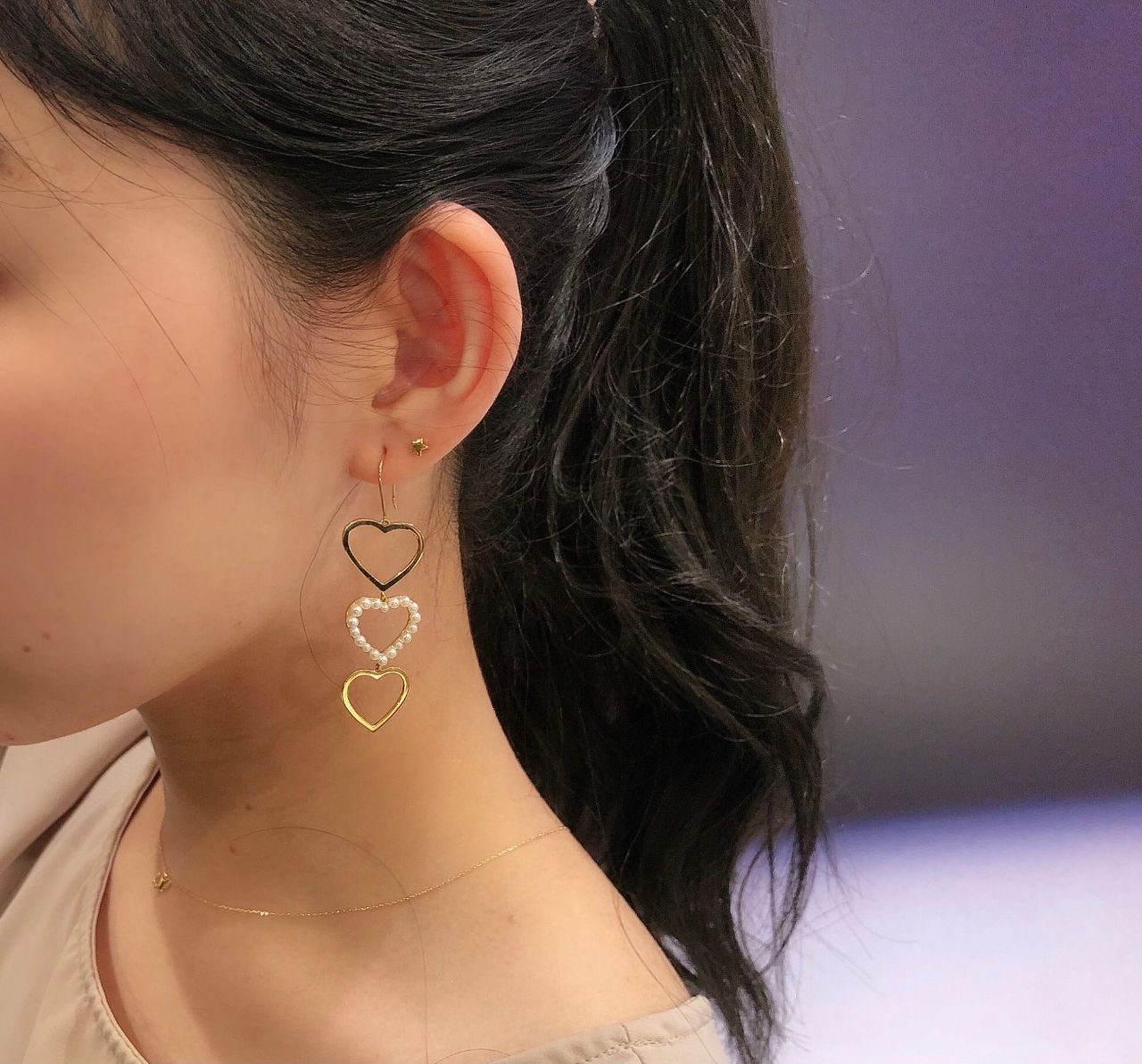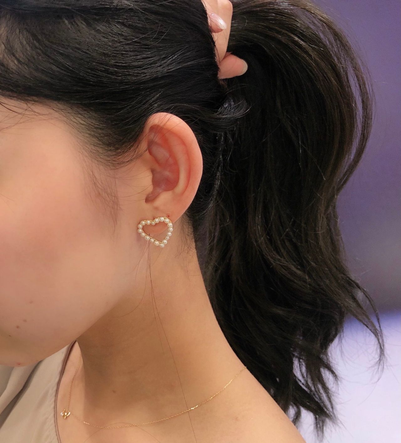 着用するとハートの隙間から耳たぶが見えるデザインが特徴で、