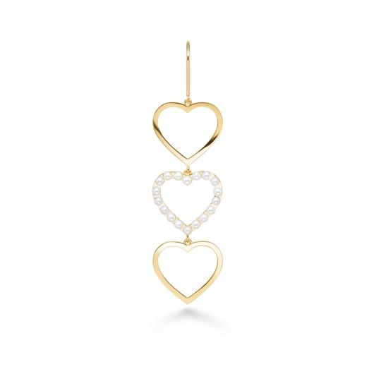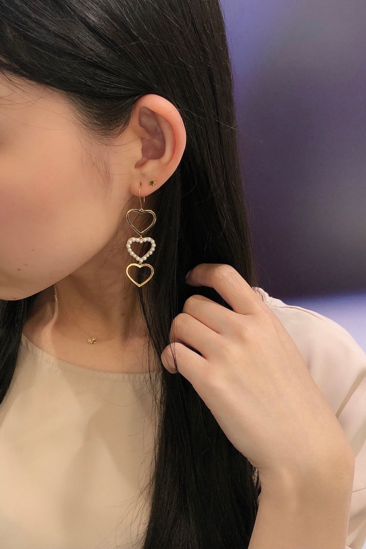 2mmの小さな淡水パールを使用した、愛らしいハートが連なるシングルピアス