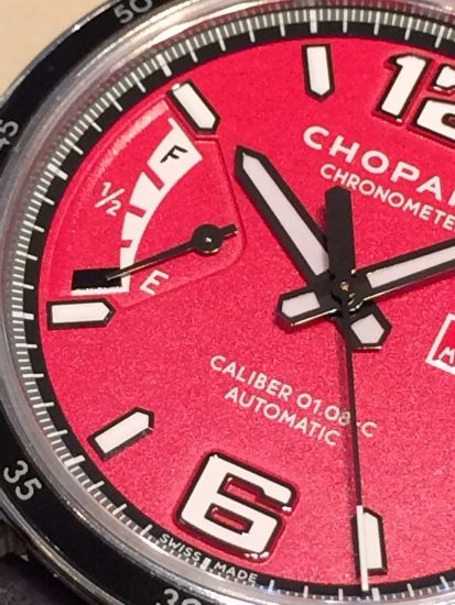 レッドカラーの際立つモデル《ショパール ミッレミリア》から限定モデルです。