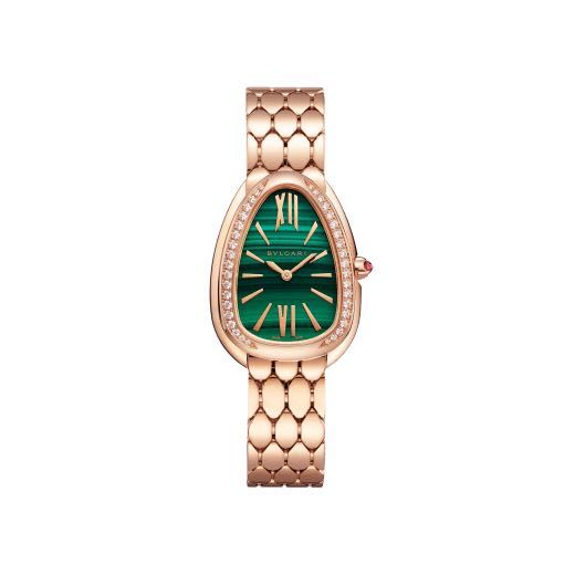 こちらの時計は文字盤にマラカイトという石を使っています。