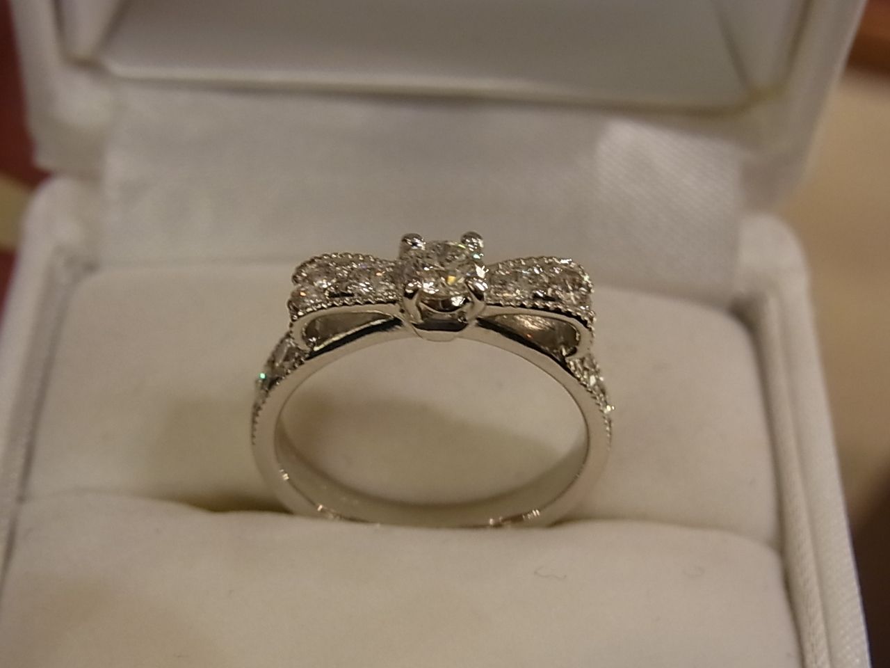 「幸せが結ばれる瞬間。永遠にほどけないふたりの絆をリボンのモチーフで表現した幸福のリング」♡