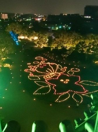 今回のデザインは、岡山市の中国デザイン専門学生がロウソク約1200個使用した