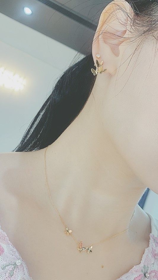 バタフライモチーフのネックレスが同じバタフライピアスと