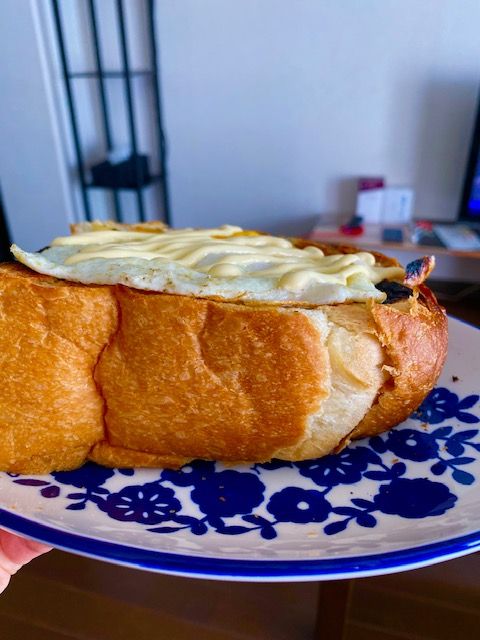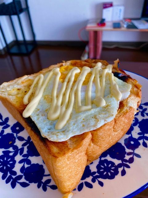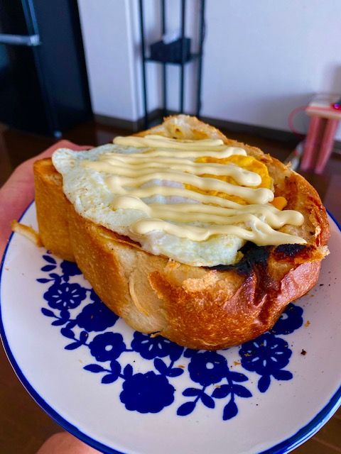 頂き物の食パンを豪快に厚めに切って