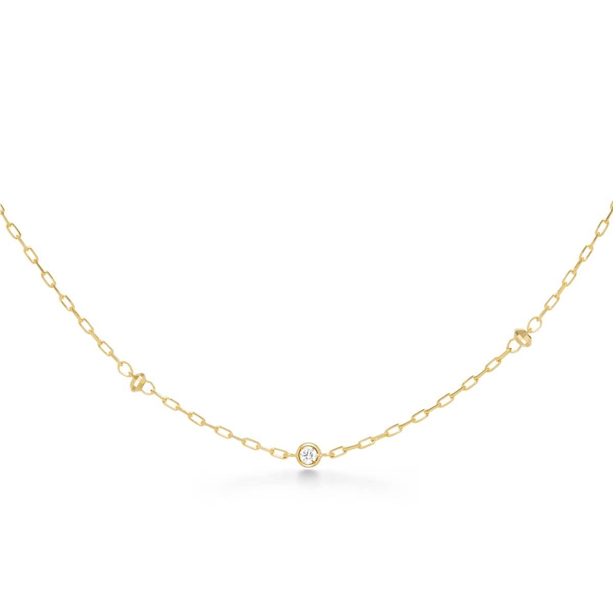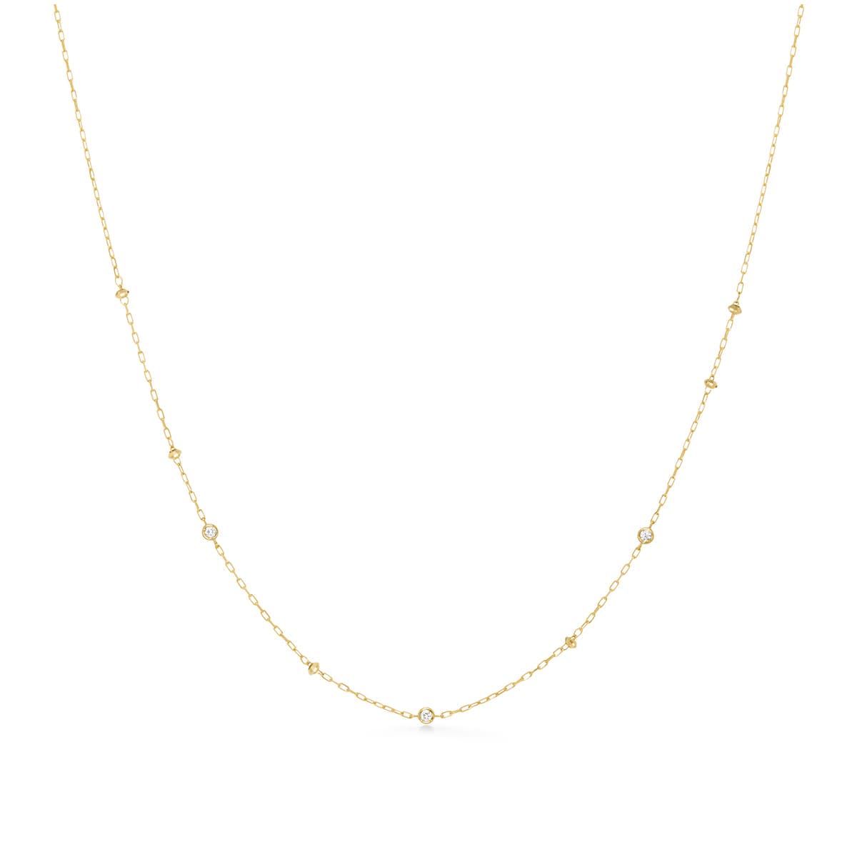 ランダムに配置された、ダイヤモンドとゴールドのカットボールがピュアで軽やかな印象のネックレス