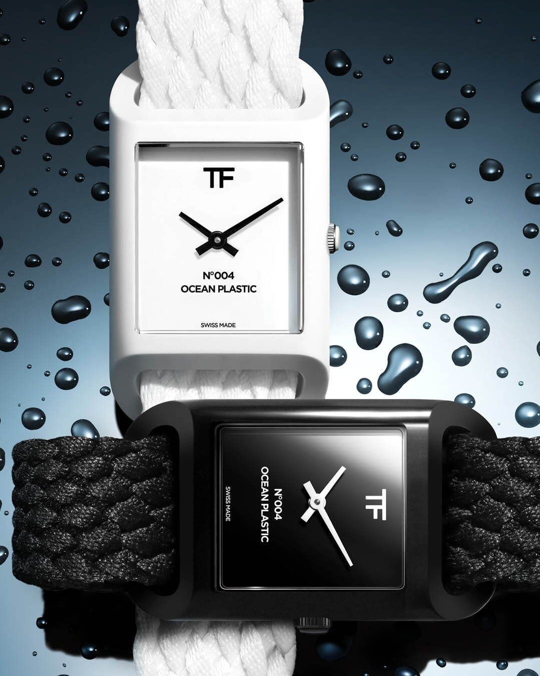 トム フォード N.004 タイムピース」は、100%リサイクルされた海洋プラスチックを用いた「トム フォード オーシャンプラスチック タイムピースコレクション」の第3弾となるモデル。