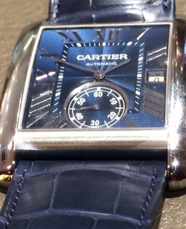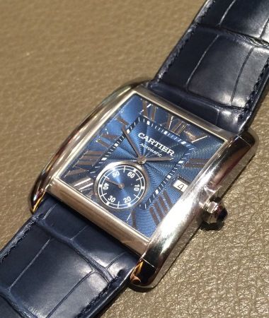 『 カルティエ タンクMC ブルーダイヤル 』 です。
