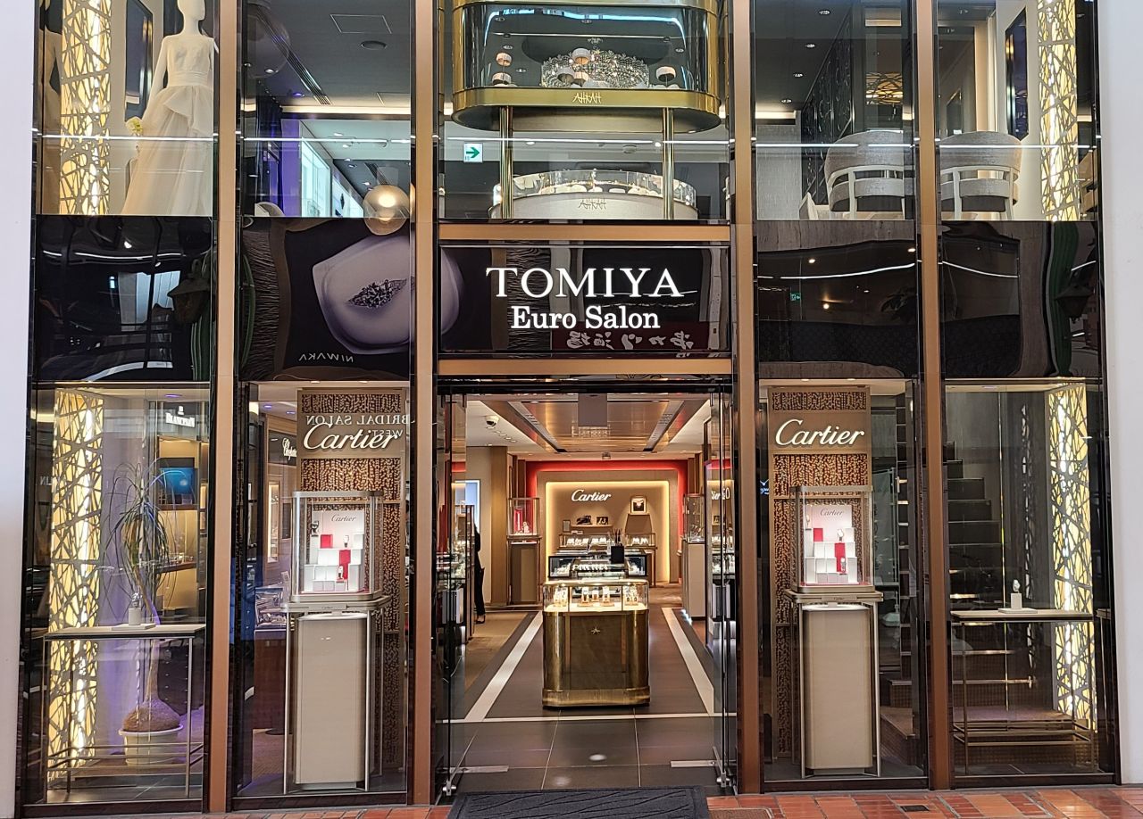入口の両サイドにカルティエを展示しています。