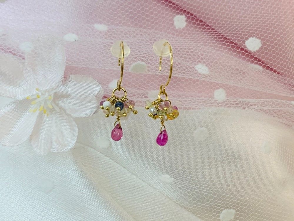 イエローサファイヤ、淡水パールなどを使用しています。
