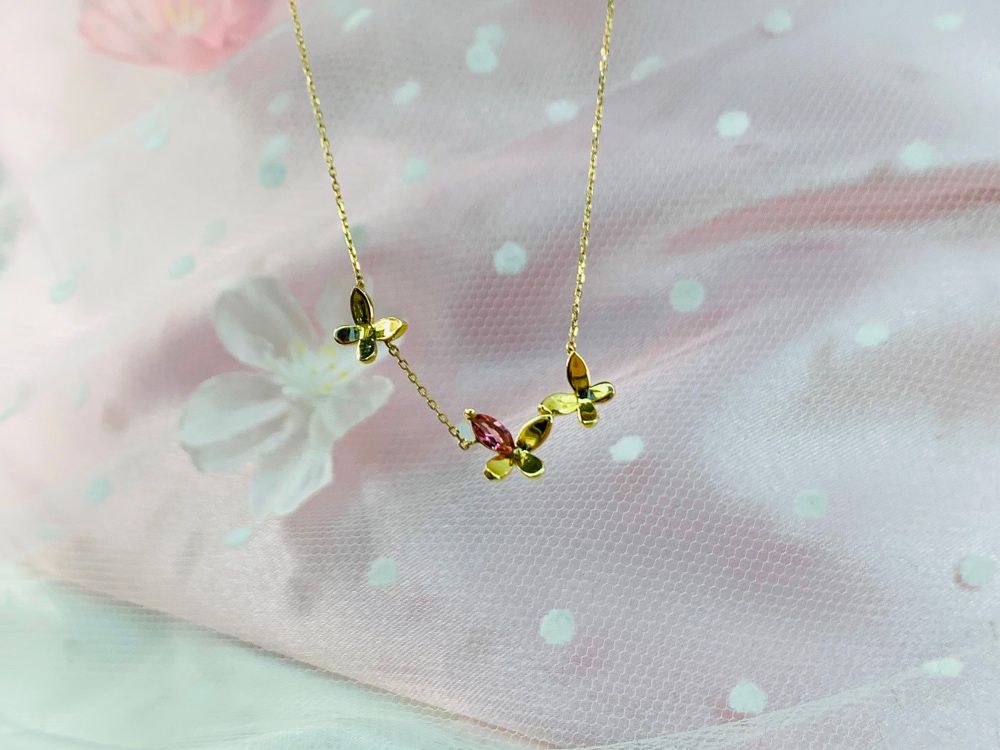 春らしいピンクトルマリン入りのバタフライモチーフネックレス✿*