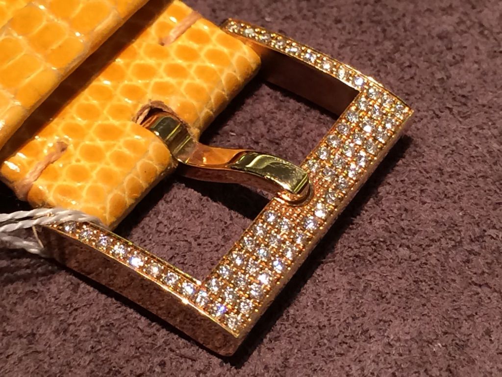 ラウンドケースには美しいダイヤモンドがびっしり敷き詰められています。