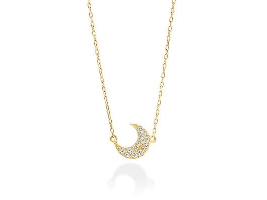 18金のプレート全面にダイヤを敷き詰めた月モチーフのパヴェは、