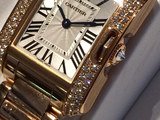 タンク アングレーズのリューズ部に輝く存在感たっぷりのダイヤモンド