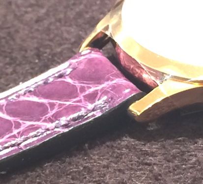 最近女性に大人気のピンクゴールドにパープルカラーのストラップのコーディネートが