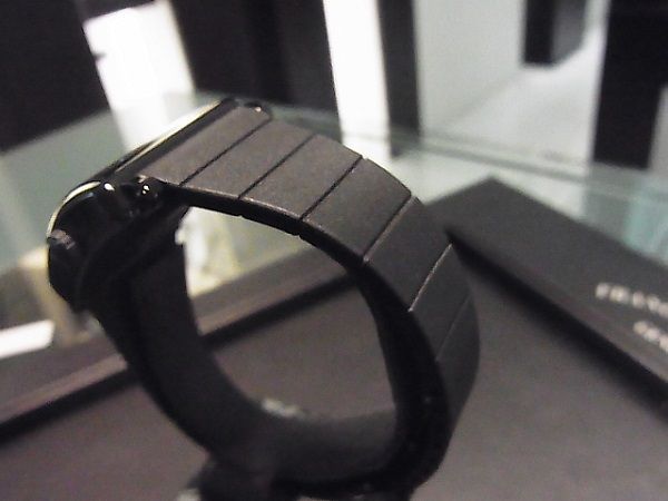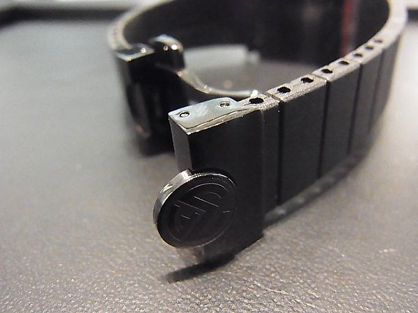 ステンレス素材のケースとDバックルにPVD加工を施し、