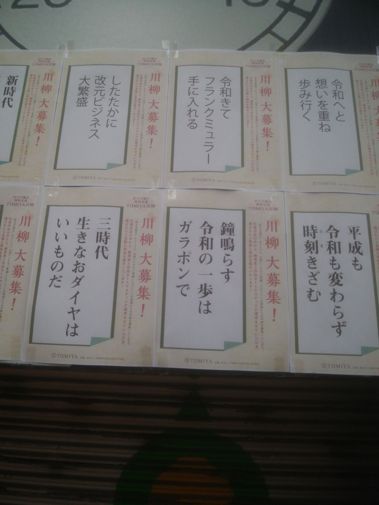 先日のGW期間中に令和にちなんだ川柳を募集しました。