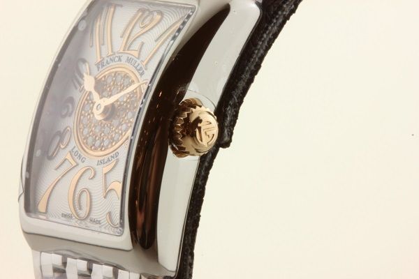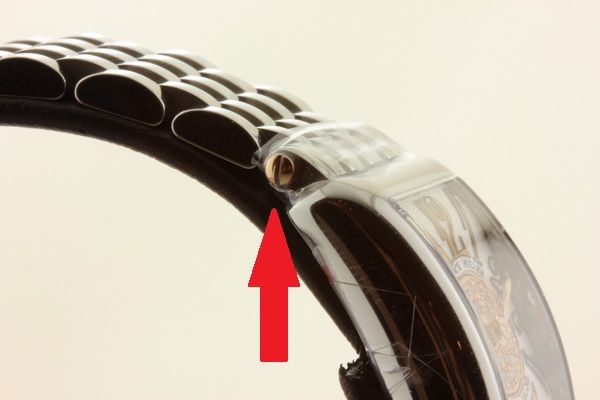 竜頭と飾りねじが18Kピンクゴールド素材です。