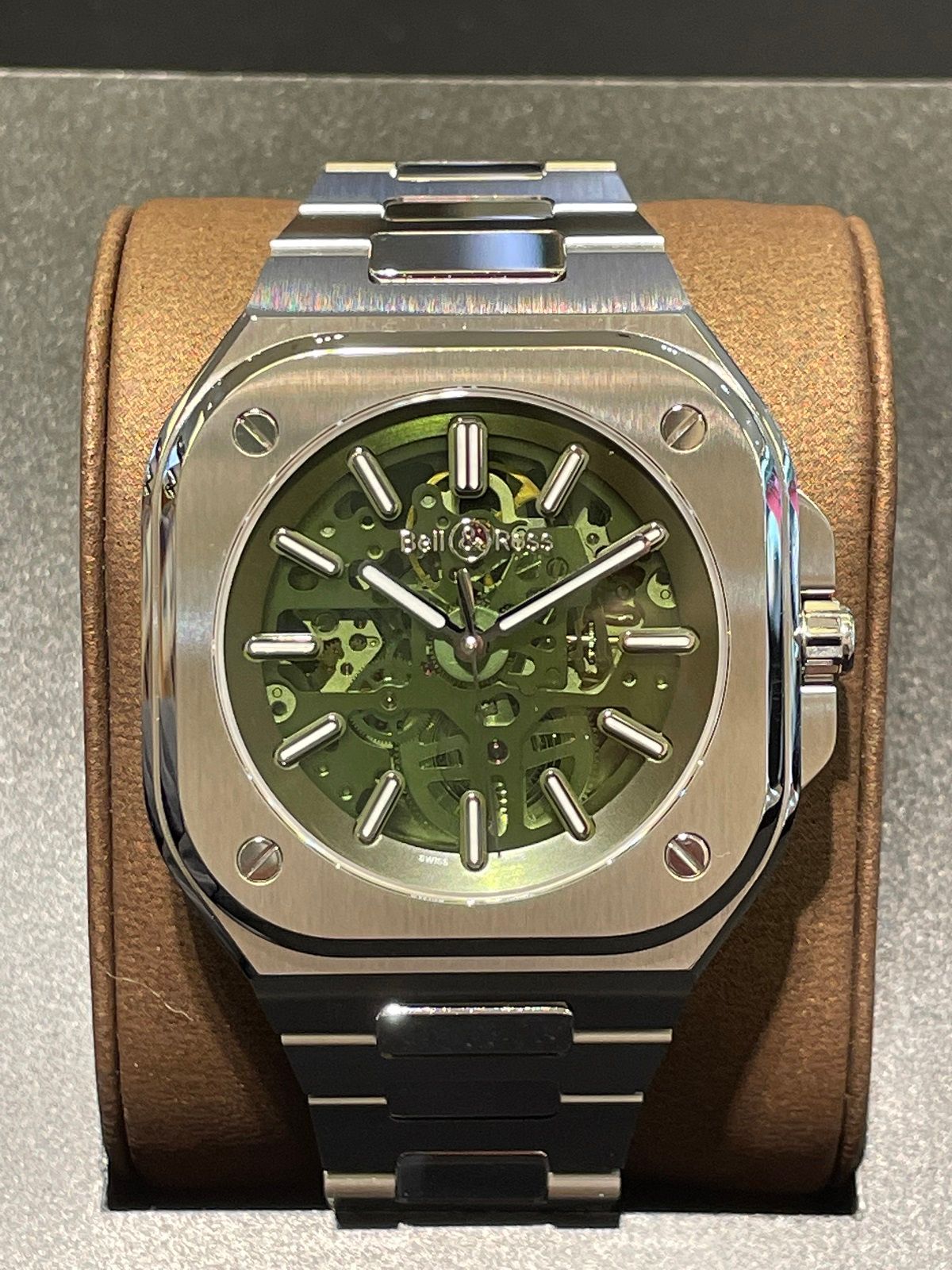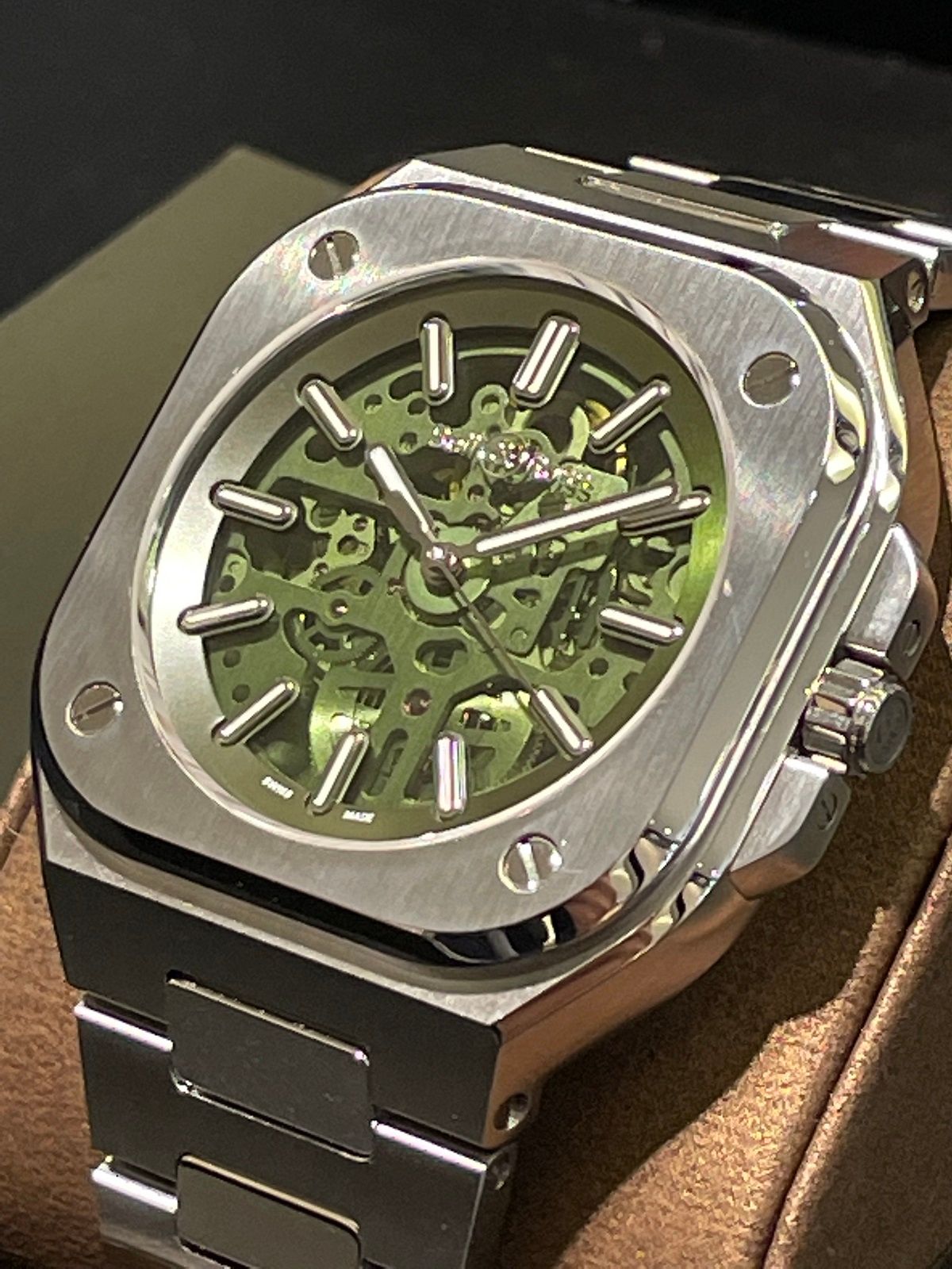 グリーンカラーのサファイヤクリスタルからムーブメントが覗けます!!