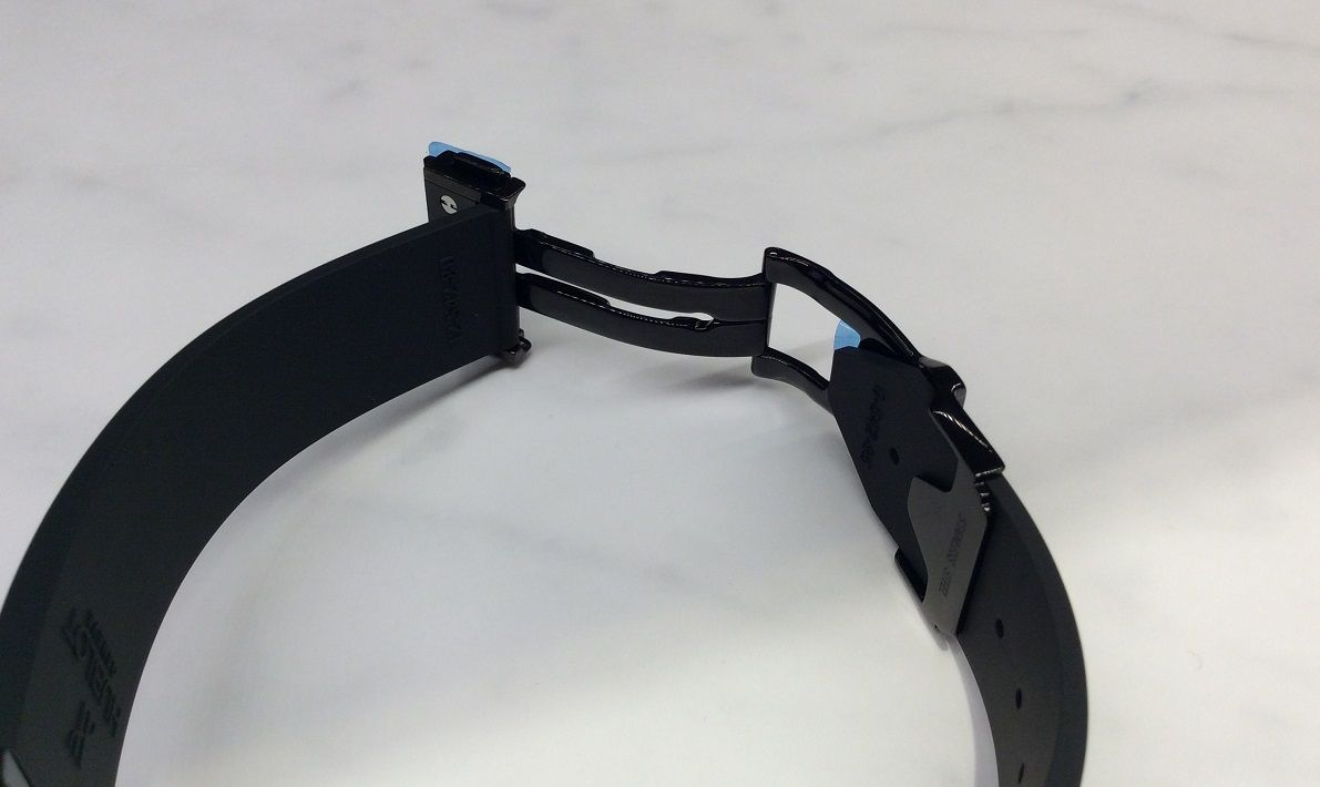 バンドが簡単に調節でき、一度長さを設定しておくとあとはワンタッチで着け外しが出来るバックルタイプを採用しています。