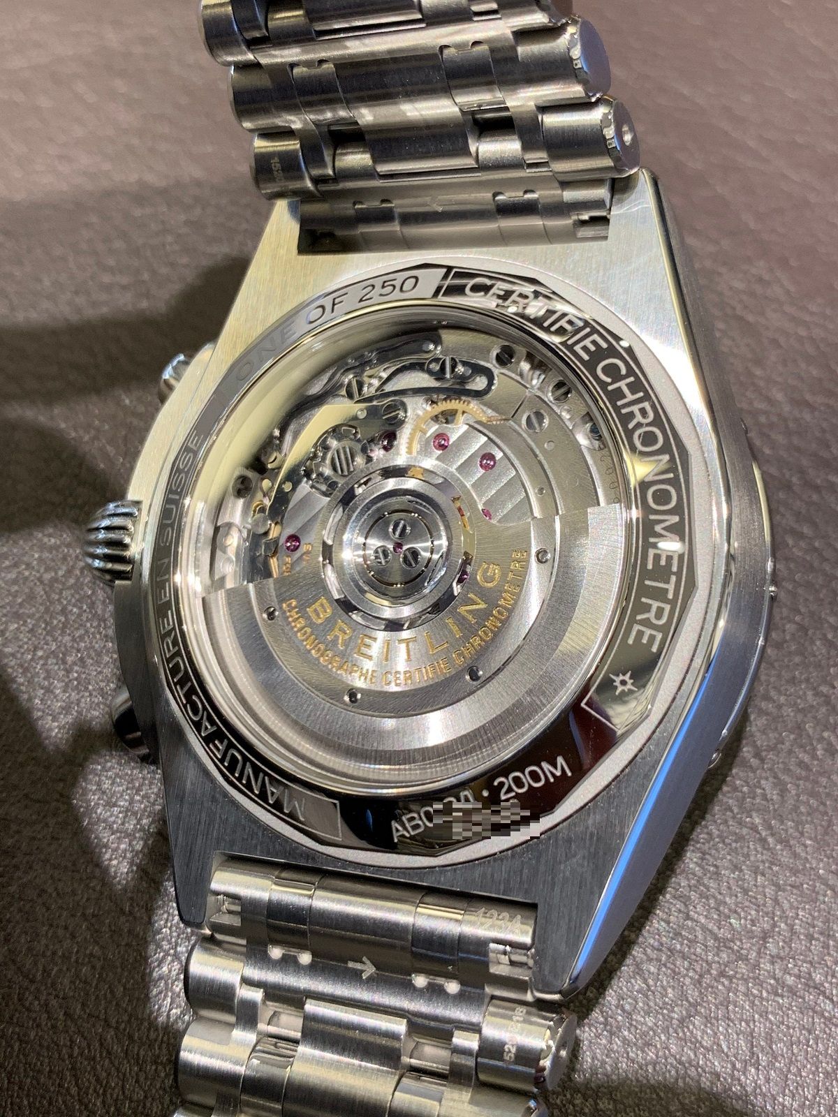 裏側からはブライトリングを代表するムーブメント01をご堪能いただけますよ!!