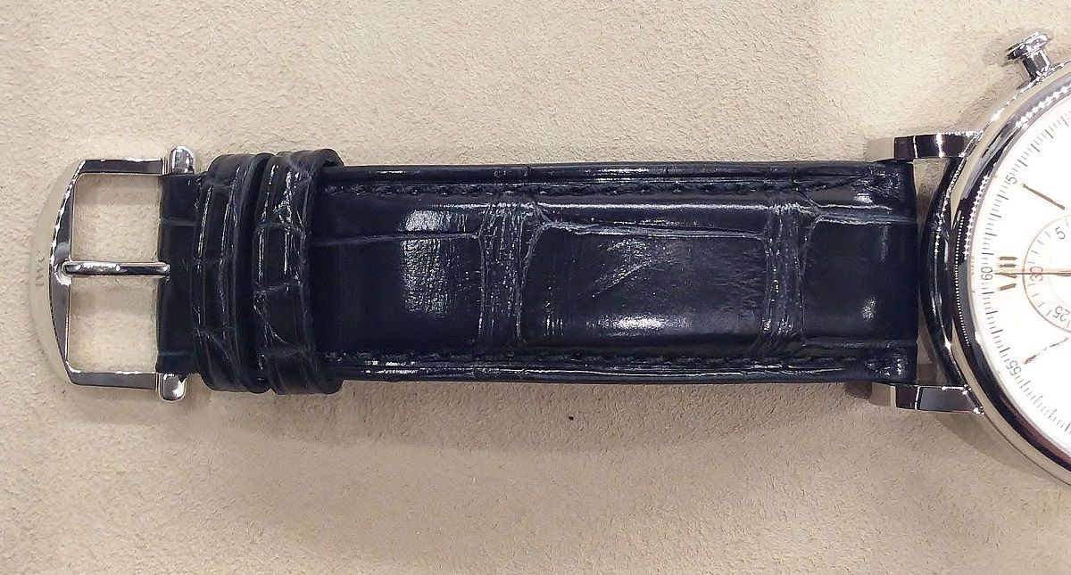 ストラップには本革のアリゲーターストラップを採用し、色は黒が装着!!