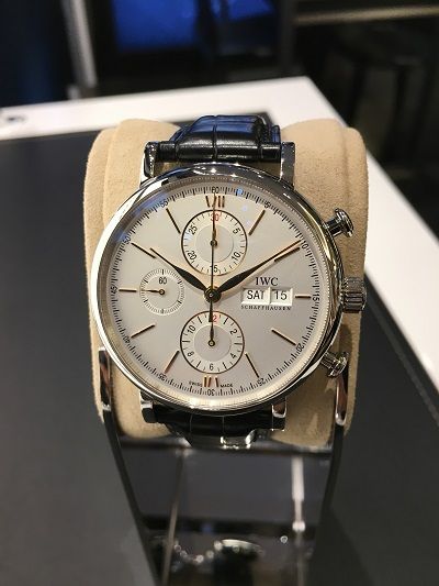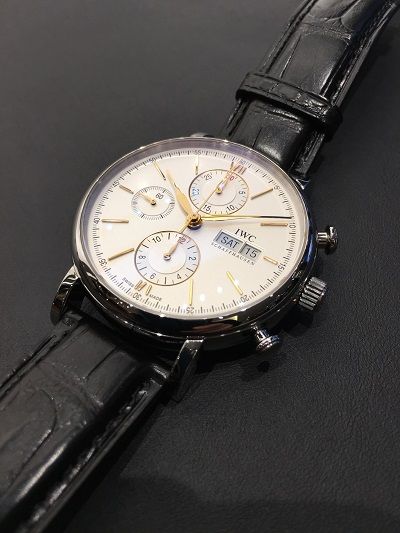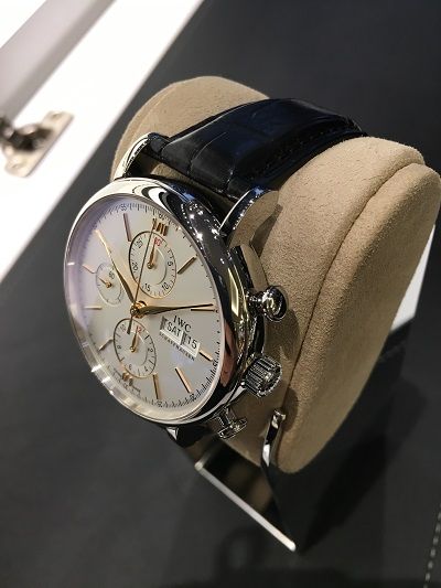 今までポートフィノ オートマティック(3針)には金針の展開がありましたが、クロノグラフにはなく、新作はまだかまだかと思われていた方もいらっしゃると思います。