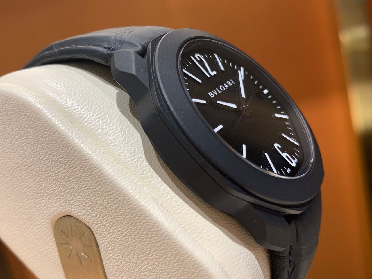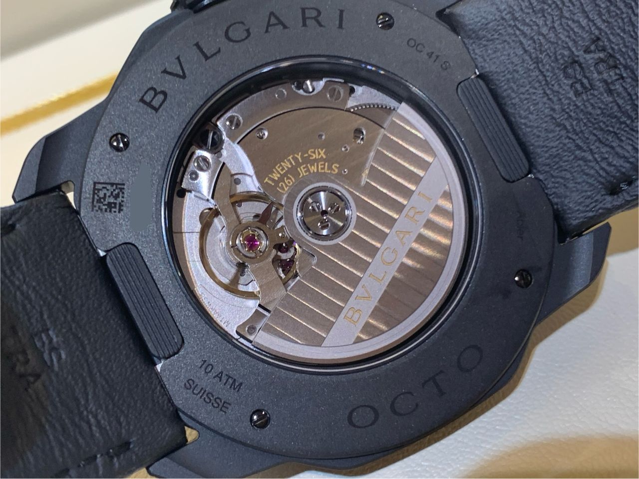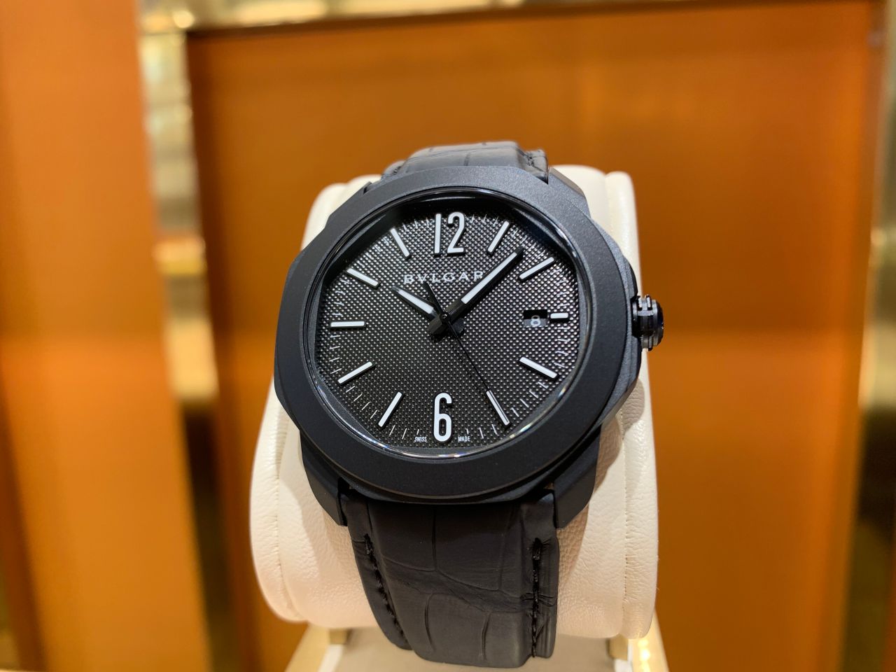ブラックDLCコーティングのステンレススティールケースにブラックアリゲーターレザーを備えた漆黒のオクトローマです!