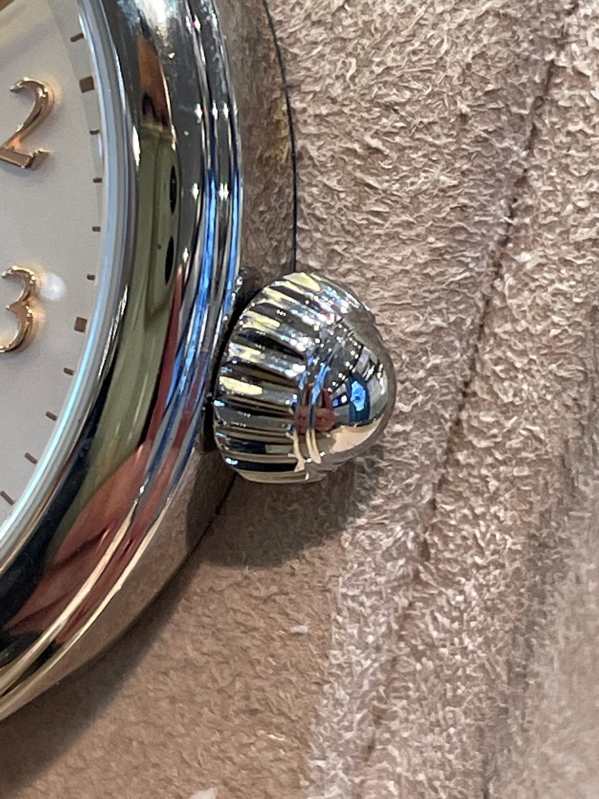 シルバー文字盤に、ゴールドとブルーの色が絶妙なバランスです☆