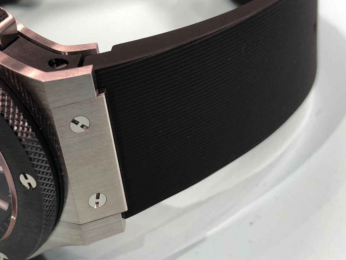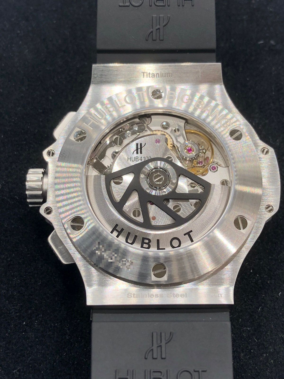 シースルーバックなので内部構造も楽しんでいただけ、HUBLOTマークのローターもお洒落!!