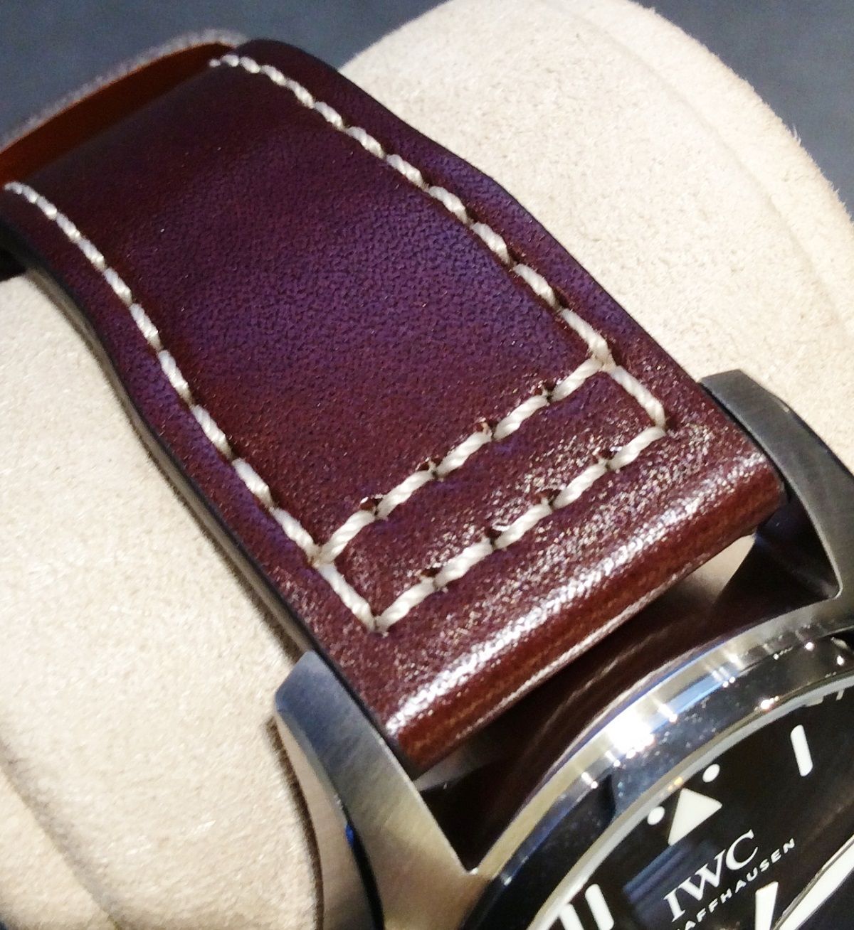 IWCパイロットウォッチの特徴でもありますステッチ入りのカーフスキンストラップを今回も採用!!