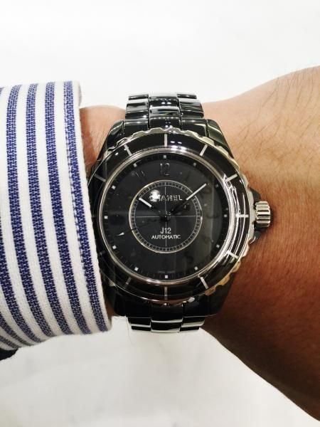絶大な人気を誇るJ12のブラックのベゼル部、文字盤の数字が全てボディと同色になってます!!