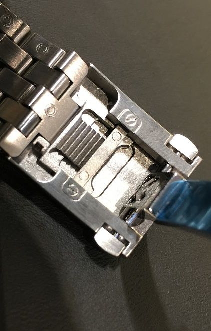 ワンタッチでメタルブレスレッドを調整する機能も付いてます!