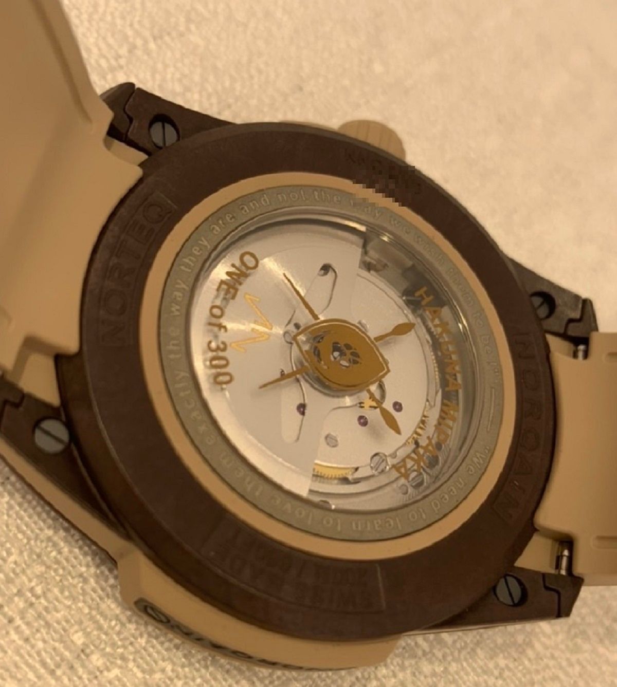 ブラウンカラーのNORTEQケースがディーンの野生動物に対する熱い想いと、カーボン複合素材のカラーリングという先端技術への挑戦を表しています。