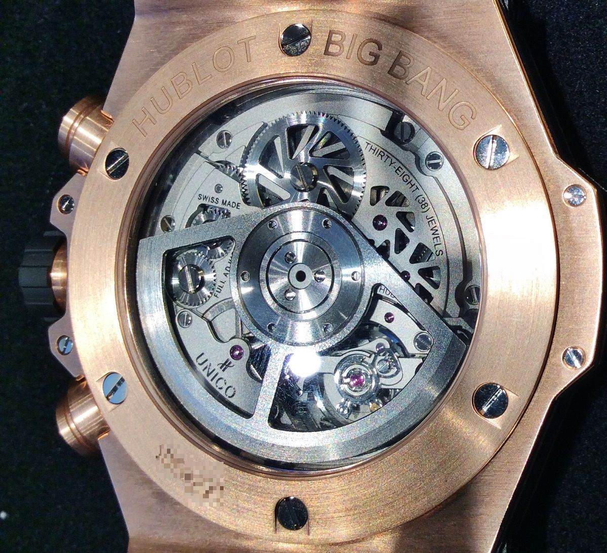 裏側からはウブロが自社開発・製造をした「ウニコ」ムーブメントの動きを存分に見て楽しんで頂けます!!