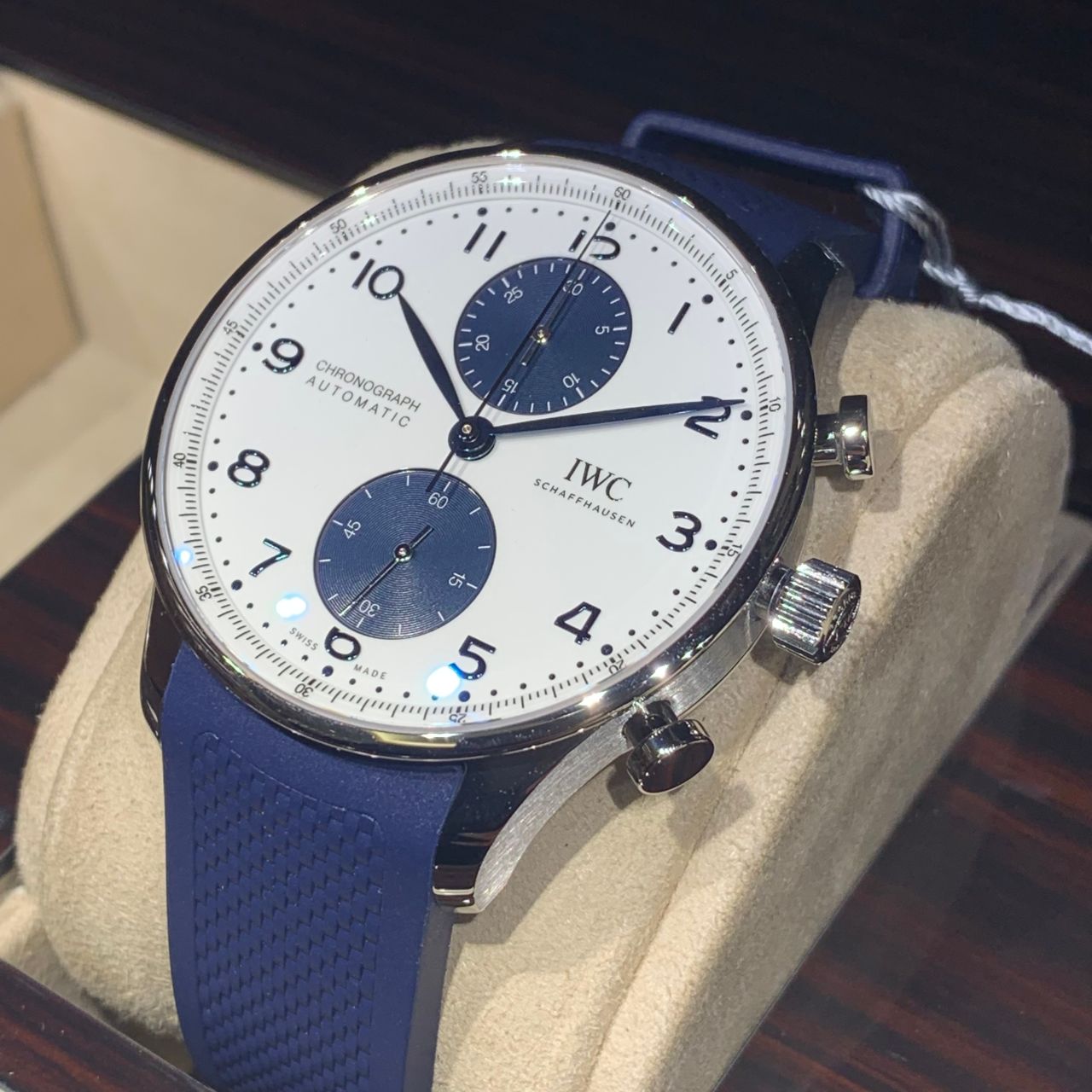 ポルトギーゼのシリーズでは珍しいホワイトの文字盤を使用しています!