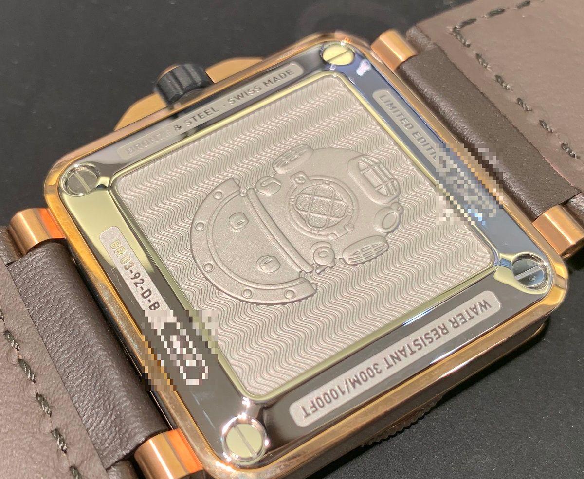 BR-03のケースバックは、ダイビングウォッチらしい装飾でロマンがありますよね。