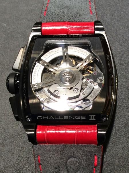 また通常のチャレンジクロノⅡならラバーバンドが付く所ですが、クストスのイメージカラーの1つでもあります赤がすごく印象的で、豪華さに一役買ってる赤のアリゲーターバンドに変わってるのも見過ごせない特別仕様点です!!