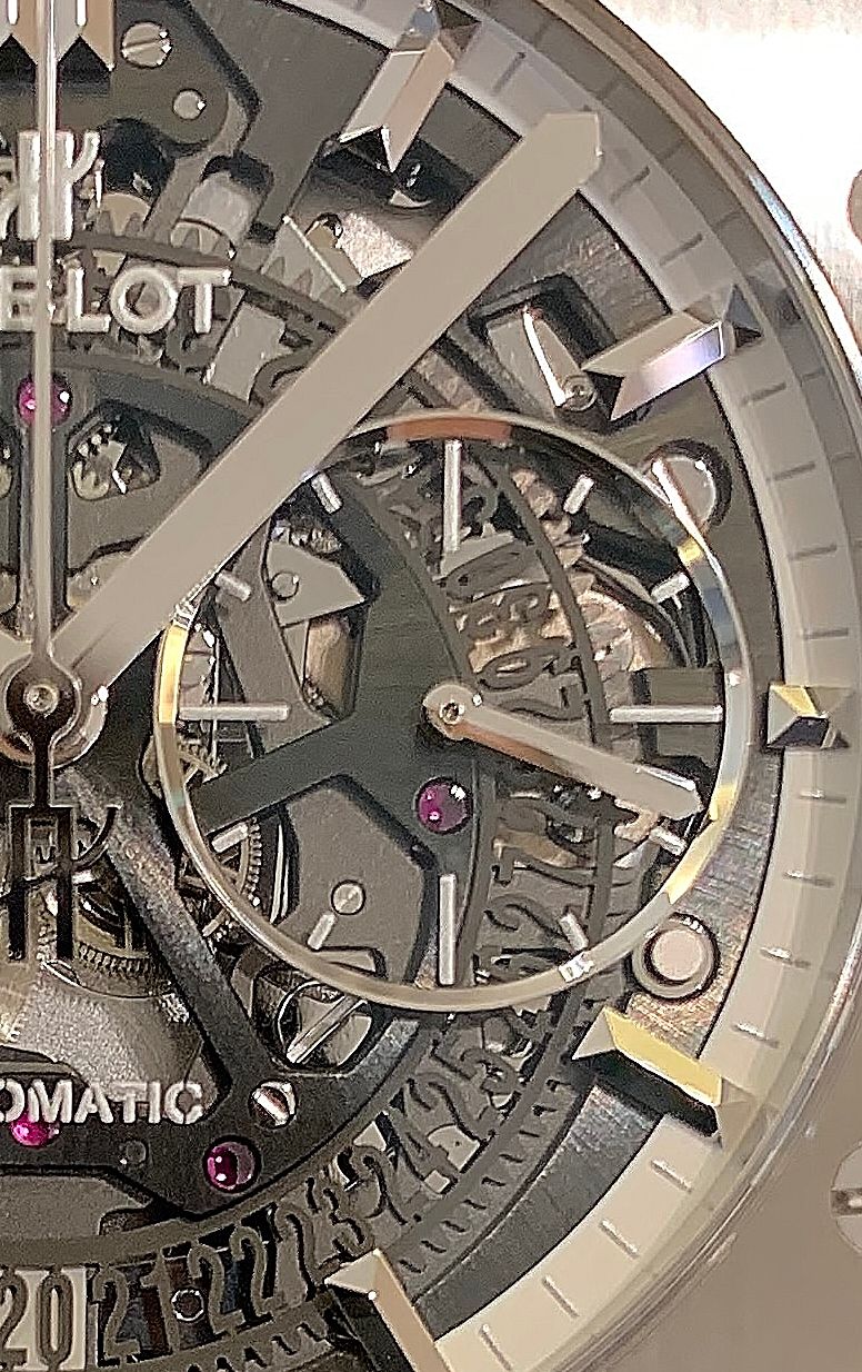 スケルトンの機械部分がグレーに色着けされているのは、このムーブメントだけなんです(ウニコムーブメントですら、そのままの金属色)!!
