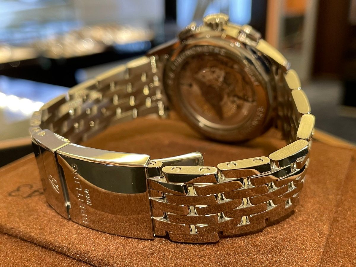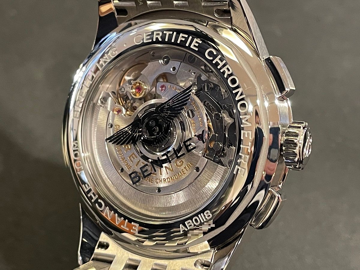 ムーブメントには『70時間パワーリザーブ』『5年間内部保証』『日付変更禁止時間帯無し』というのが非常に魅力的な、ブライトリングの自社開発製造キャリバー01を搭載しています!