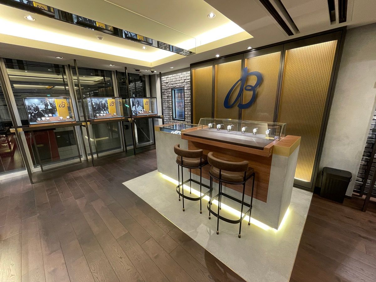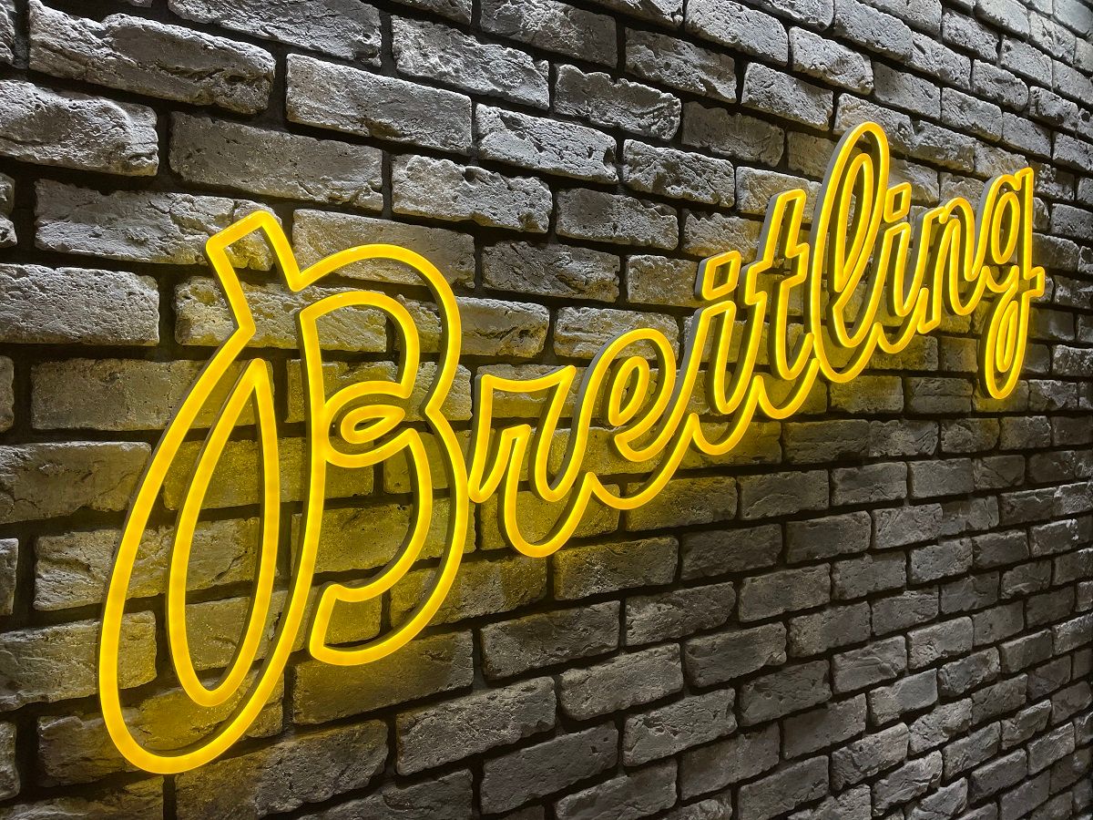 まず階段を登ってすぐ見えてくるのは、存在感抜群のBreitlingロゴ!
