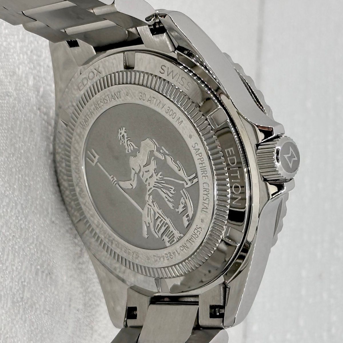 裏蓋にはネプチューンが刻印してあり、EDOXのコンセプトである「THE WATER CHAMPION」を体現しております。