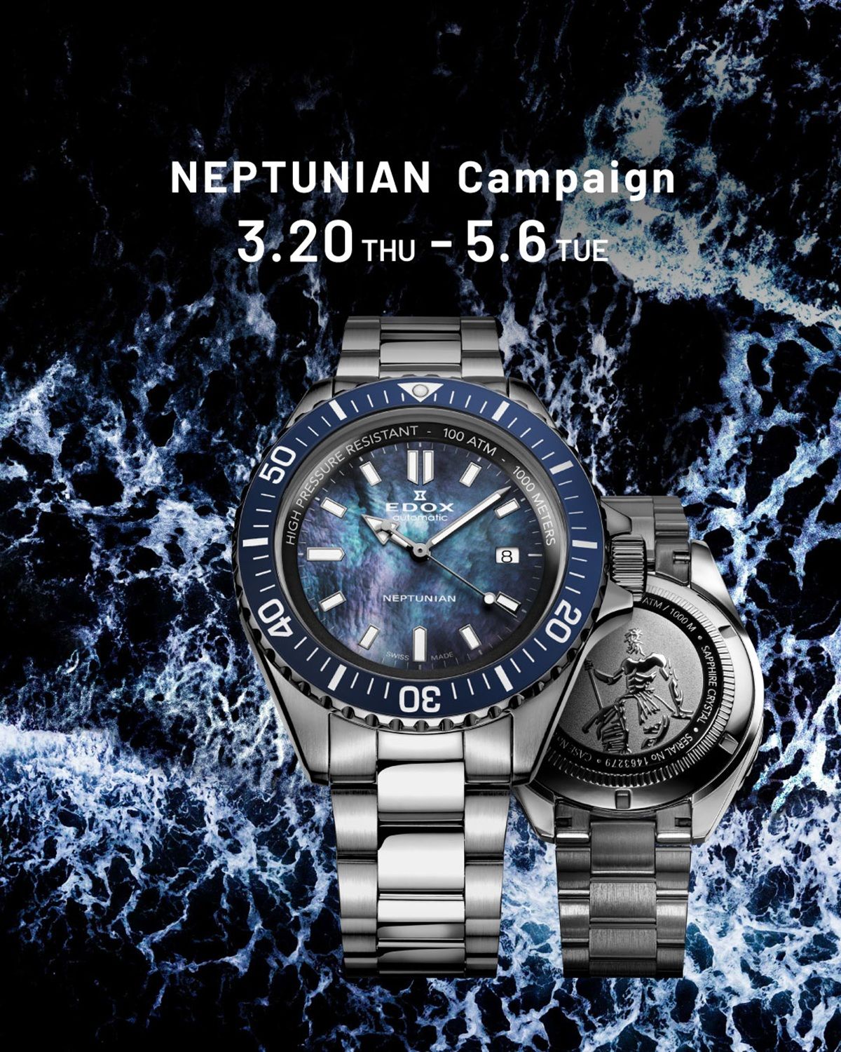 さて、タイトルにも記載させていただいた通り、ただ今【EDOX ネプチュニアン キャンペーン】を開催中です!