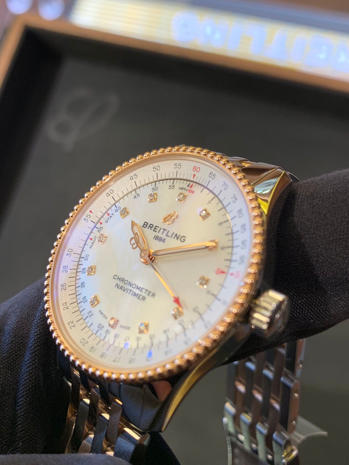 女性でも使いやすいナビタイマー・オートマチックは、素敵な女性をより素敵に輝かせてくれる魔法の1本です!!