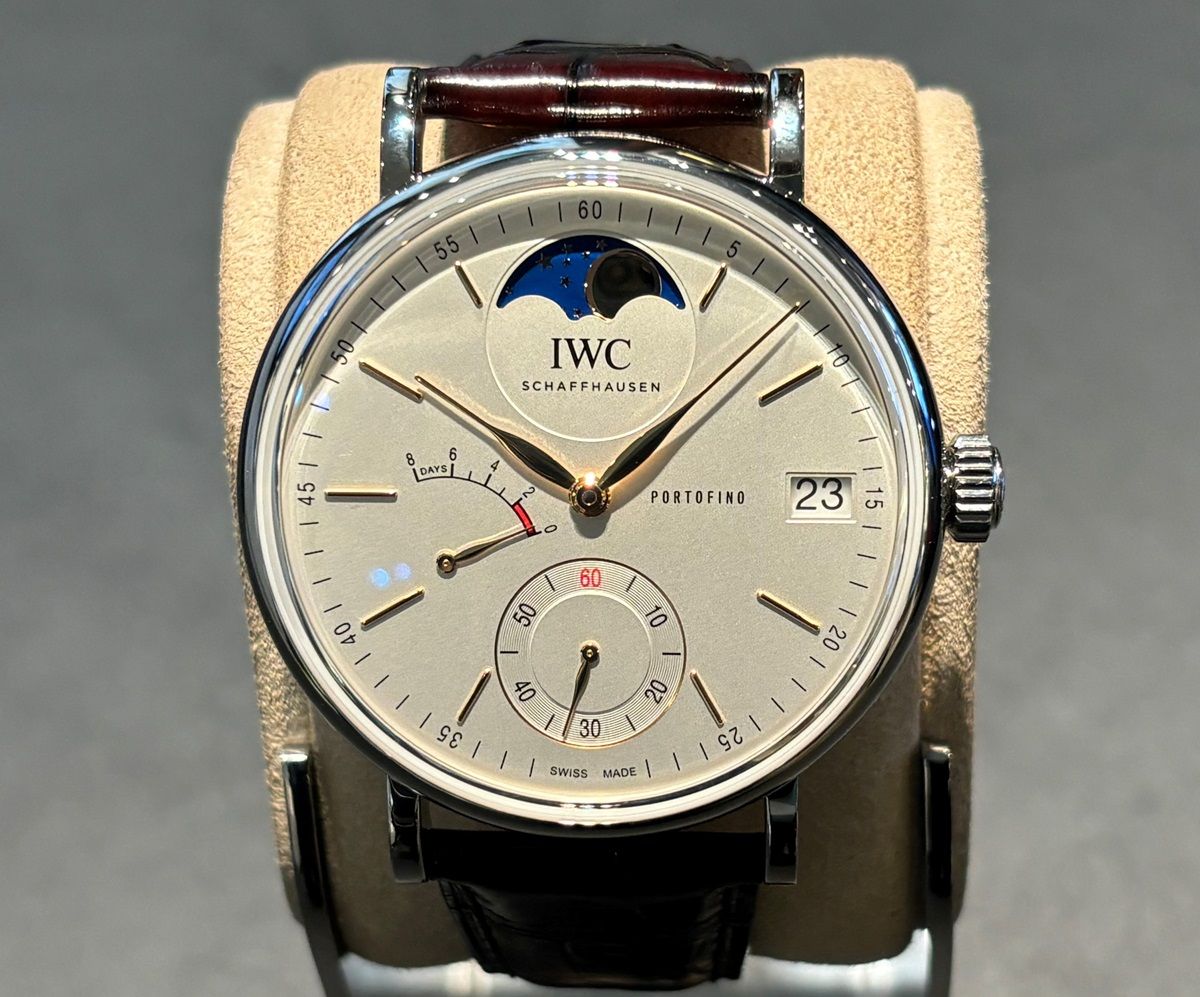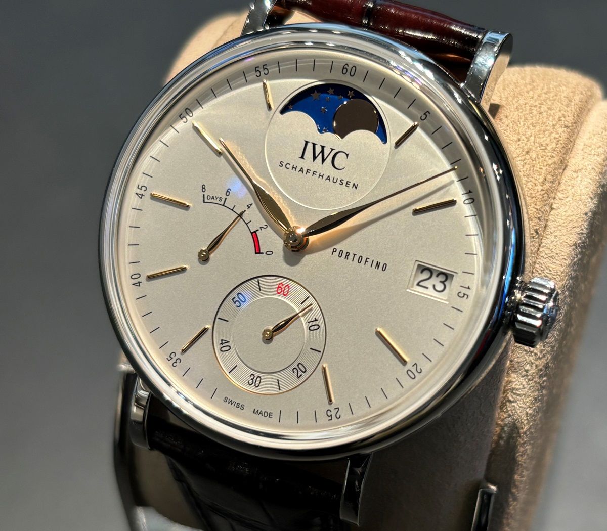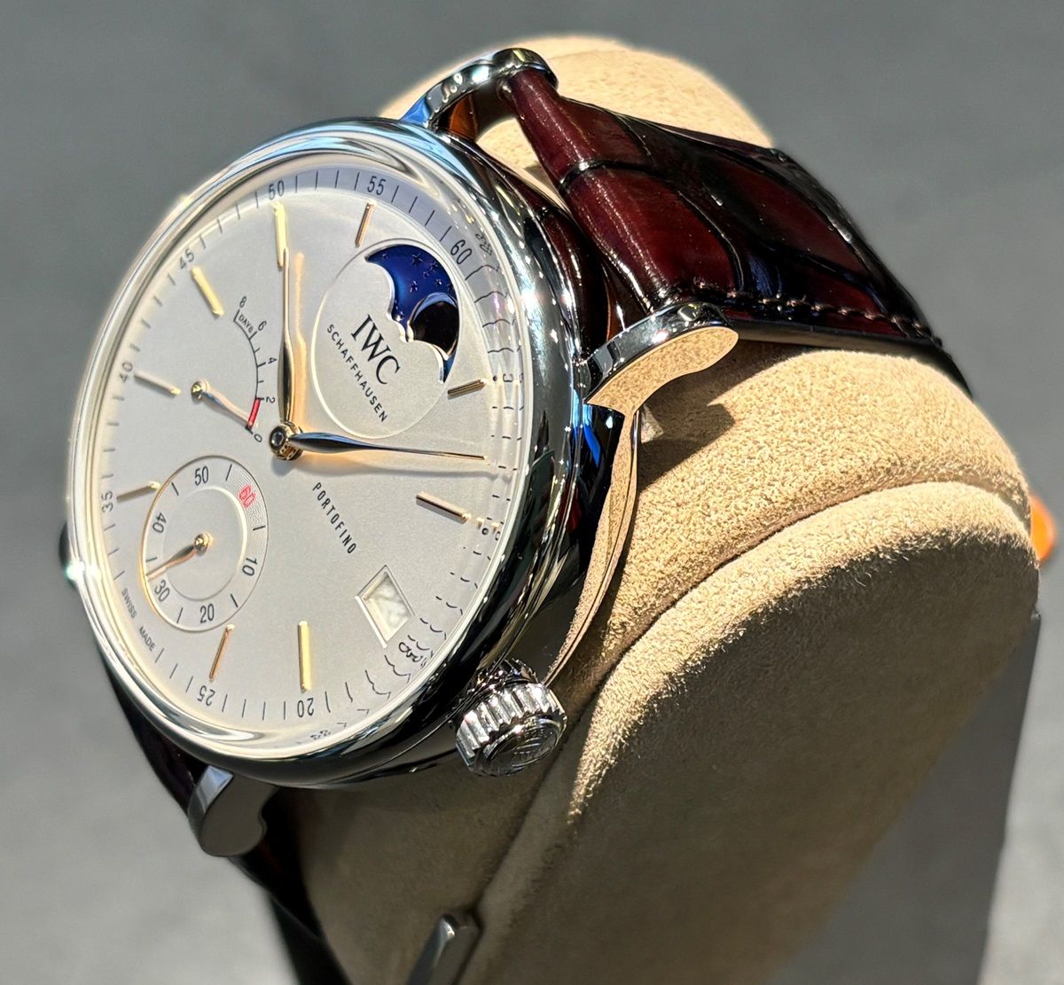 ポートフィノが定番かつ王道のデザインだからこそ、手巻きやムーンフェイズが映えるカッコイイモデルです。