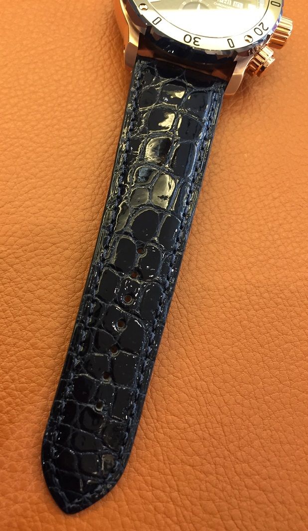 バンドはダークブルーのクロコダイルの革ベルトになっております!