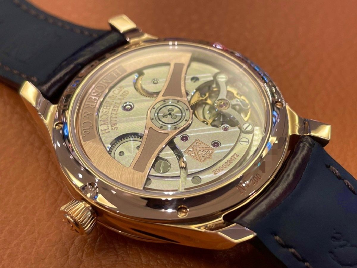 Hモーザーならではのゆっくりと動くテンプは、時間を忘れていつまでも見ていたくなりますね!