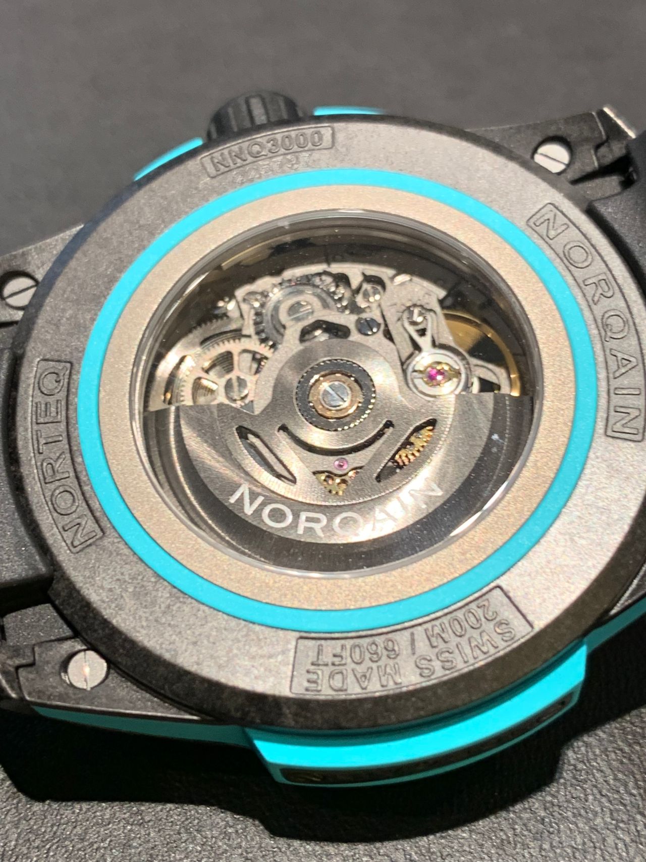 ケースの黒い部分はNORTEQ®と呼ばれるノルケインが開発したカーボン複合素材で、軽量で傷にも強い特徴があります。