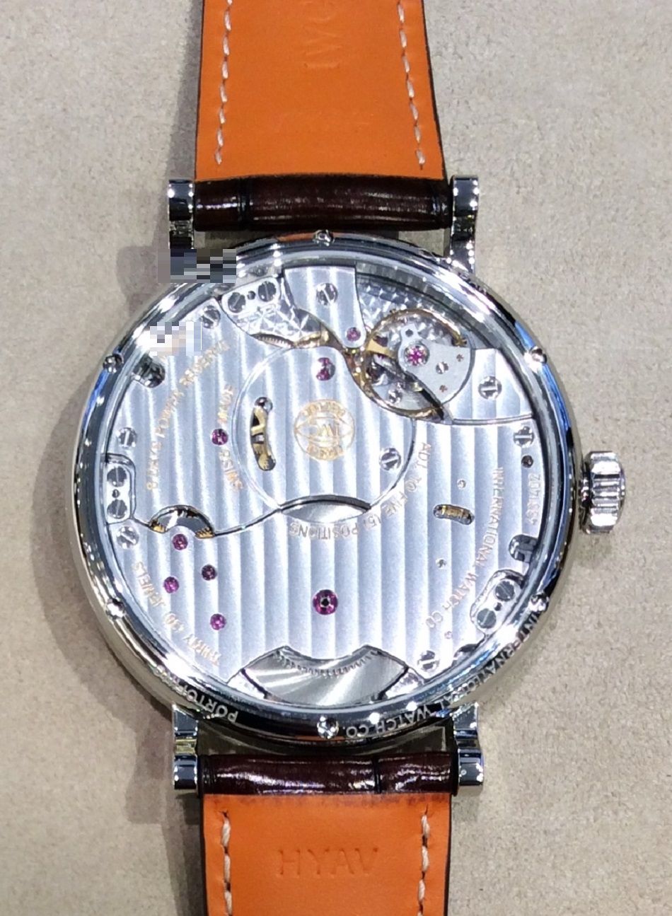 仕様:IWC自社製キャリバー59800、8日間パワーリザーブ(表示付き)、日付表示、ムーンフェイズ表示、両面反射加工を施したサファイアガラス、3気圧防水。