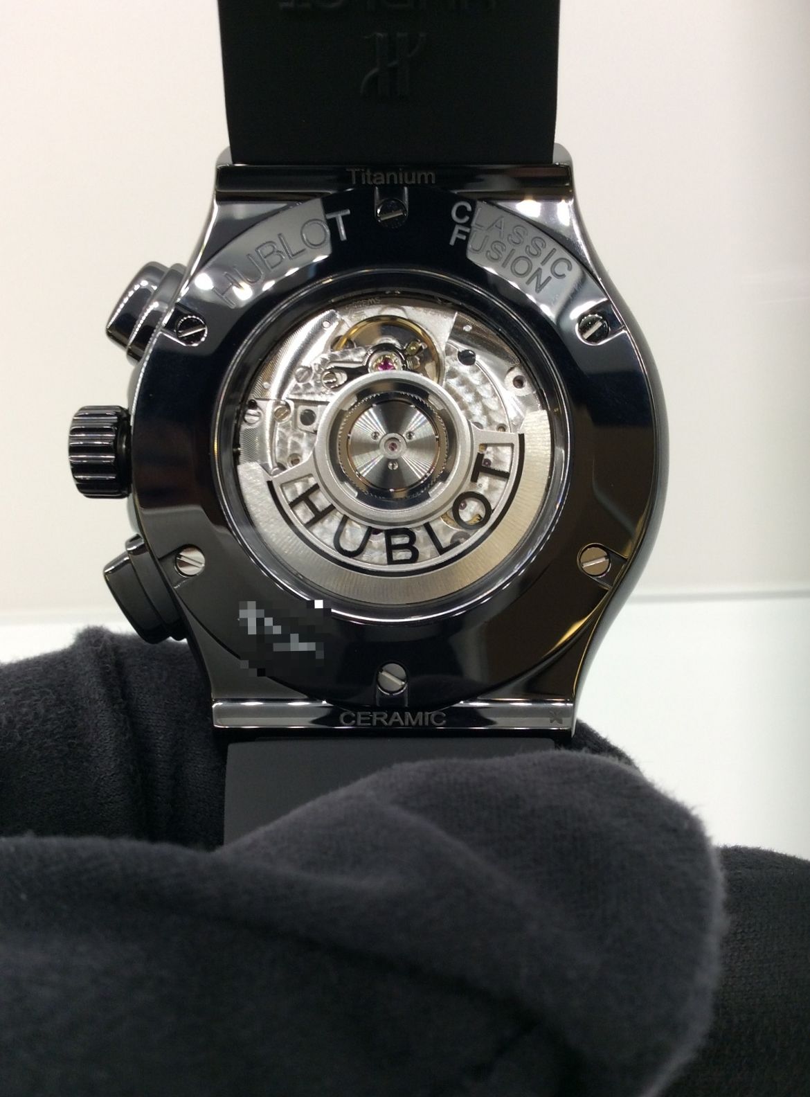 裏から見ても中が見えてHUBLOTマークもお洒落ですよね!