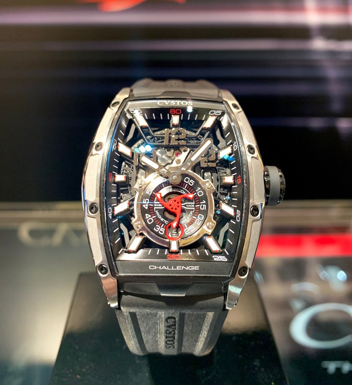 また、目を引く6時位置の赤いスモールセコンドには、大型タービンを想起させる羽根車が取り付けられています!!
